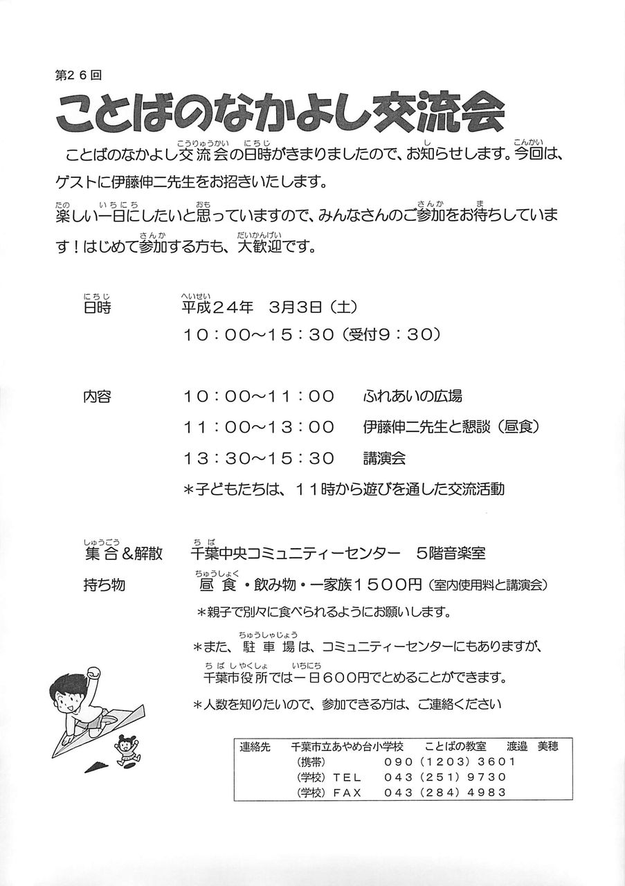 千葉市のことばの教室の教師が中心になって、どもる子どもの交流会をしています。私も何回も参加したことがあるのですが、もう26回になるのだそうです。